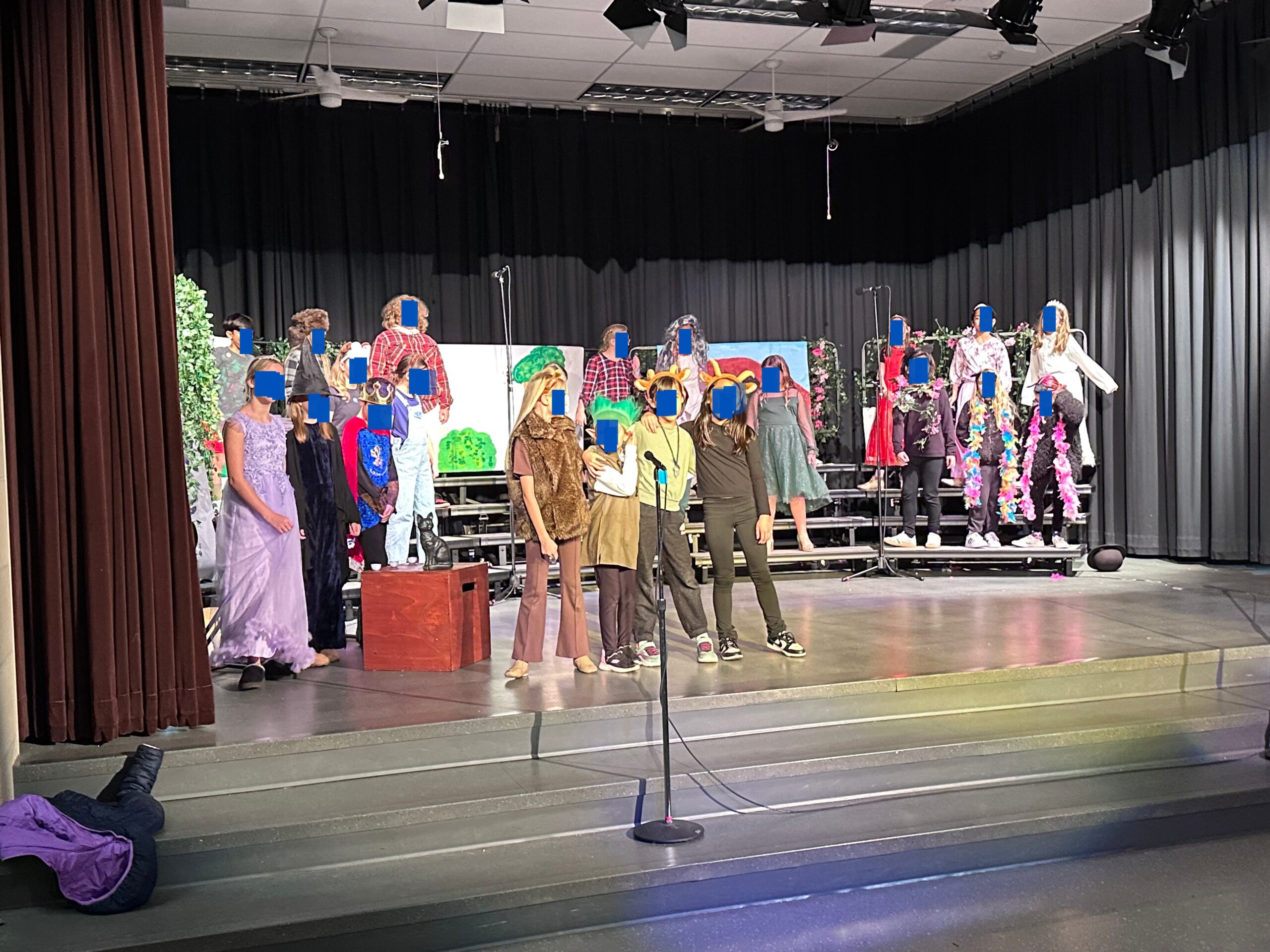This was one of the best received school plays I have put on as the drama director. This is my 5th year doing school plays for my elementary school as an after school program for 3rd-5th graders (I’m a teacher at the school). We’ve put on larger musicals such as “Annie Jr.” and “Jungle Book,” but I got the feedback that a lot of people enjoyed this show just as much, if not more, because so many kids had the opportunity to have a good part and a chance to shine, not just a few. I did change the song lyrics for the last princess song – even though it fits that the princesses will kiss the frog, it didn’t sit right with me to have the idea that kissing some rando was the kind / right thing to do. I had them give them Hershey’s kisses instead (We’re not gonna kiss him / That wouldn’t be right! / How ‘bout a Hershey’s? / Dark choc-late or white?) and it fit seamlessly. I also added some lines for emcee’s at the beginning, grandmother lines, and switched out the 3 pigs song for some songs in Character Matters II that I preferred. But it all worked out – and the kids LOVED it. Definitely going to put this play into the permanent rotation of drama club shows.